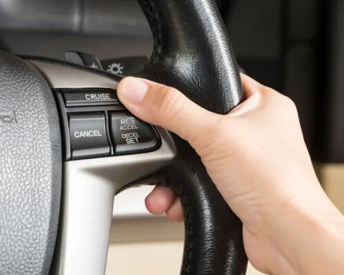 Cruise control allows you to maintain a constant speed without using the accelerator. After you set the selected speed, you can remove your foot from the gas pedal. Many drivers enjoy using cruise control because it relieves the fatigue on your foot and ankle, especially when you’re traveling for long distances. Cruise control can improve your mileage, and it also helps prevent drivers from accidentally exceeding the speed limit.