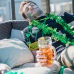 Read more about Man passed out covered in saint patricks day decorations is holding a beer while passed out in the day light.