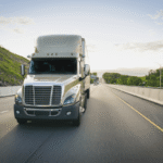 Read more about Semi-truck driving down a highway through rural terrain, representing commercial truck accidents in Nebraska caused by hours-of-service violations, fatigue, and FMCSA regulation breaches that impact liability in rural crash claims.
